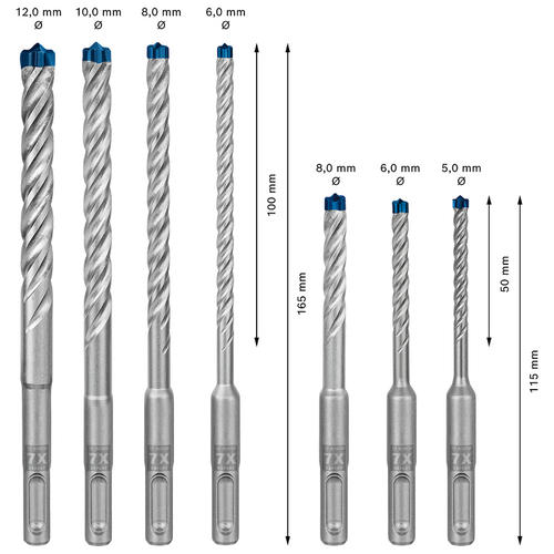 Bosch Set 7 Mechas Sds Plus 5,6,8 X 115 Y 6,8,10,12 X 165