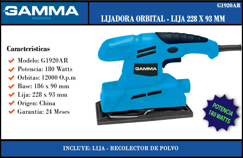 Gamma Lijadora Orbital 180w 1/3" Lija 240 X 090 Con Bolsa Recolectora (hg030)