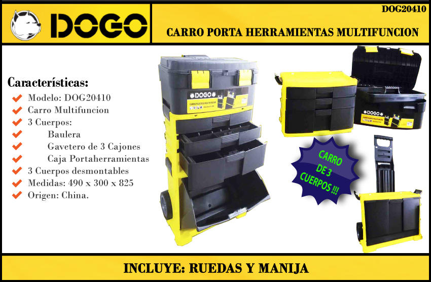 Dogo Caja Herramientas Carro Multifuncion 3 Cuerpos 490x300x825