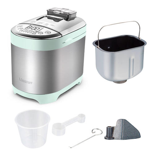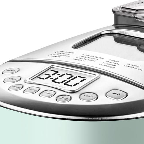 • Especificaciones: Pantalla Led | Control Digital Táctil | Molde Antiadherente Con Asa | Dispensador Para Agregar Frutos O Nueces | Tapa Con Visor Transparente | Paleta De Amasado Desmontable