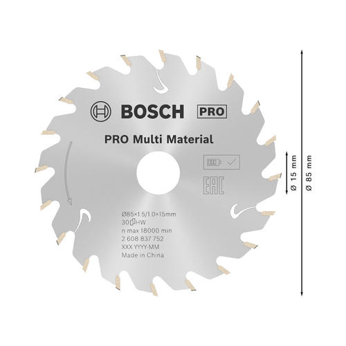 Bosch Disco Corte 85 Mm Multimaterial 30 Dientes Para Gks 12v-26