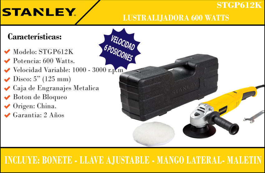 Stanley - Lustralijadora 5" 600 W -3000rpm Maletin Stgp612k