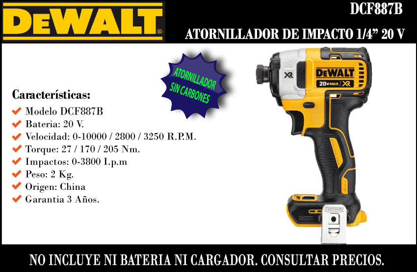 Dewalt Atornillador Impacto 1/4 20v Brushless ( No Incluye Bateria Ni Cargador)