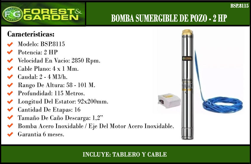 Forest Garden Bomba Sumergible Pozo 2 Hp