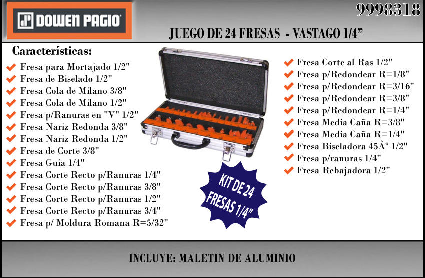 Dowen Pagio Set 24 Fresas Vastago 1/4"