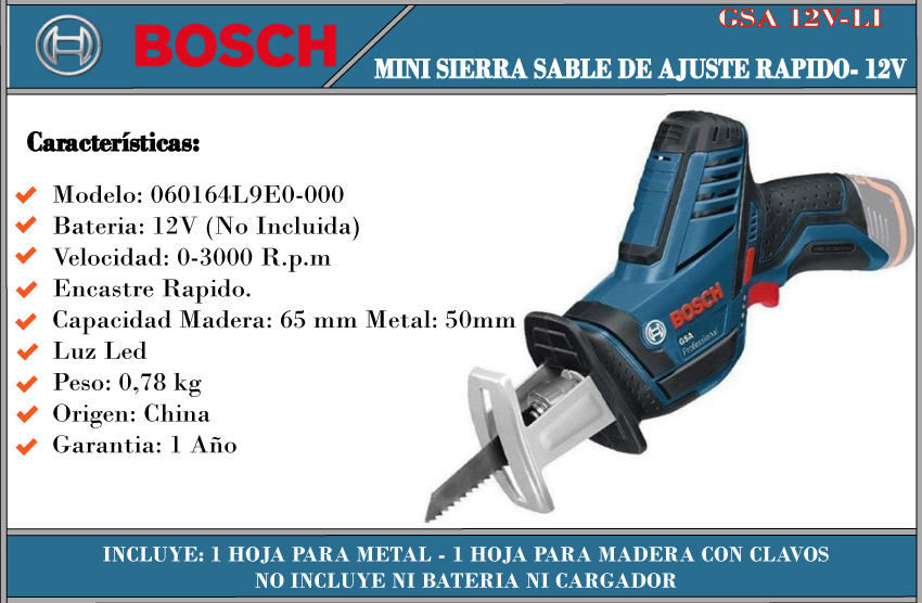 Bosch Mini Sierra Sable 12v Gsa 12 V-li (sin Bateria - Sin Cargador)