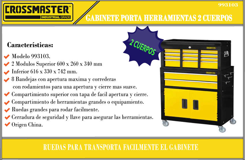 Crossmaster Gabinete Porta Herramientas Taller 2 Modulos