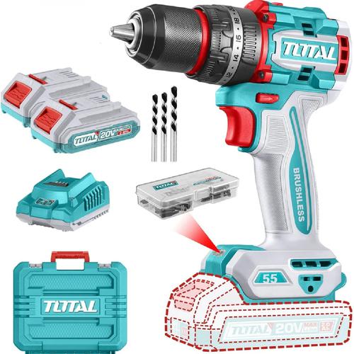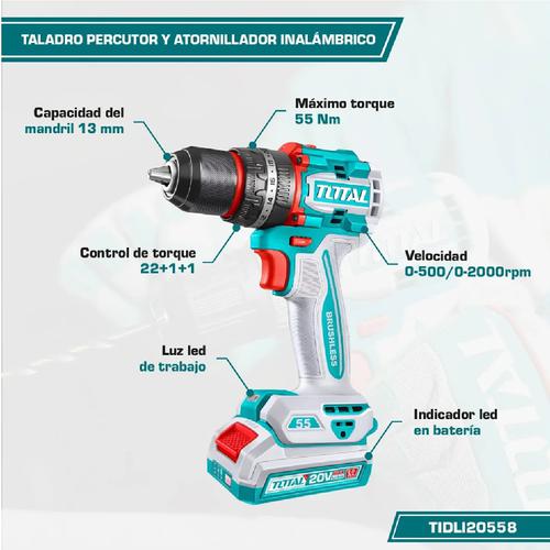 Total Atornillador Taladro Percutor 13 Mm - 20 V (2 Baterias - Cargador - Maletin)